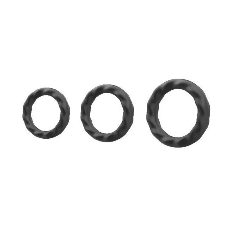 Conjunto composto por 3 anéis de silicone em tamanhos diferentes, desenvolvidos para ajuste confortável e seguro. Fabricados em silicone macio e flexível, proporcionam toque suave, boa elasticidade e fácil adaptação ao uso.